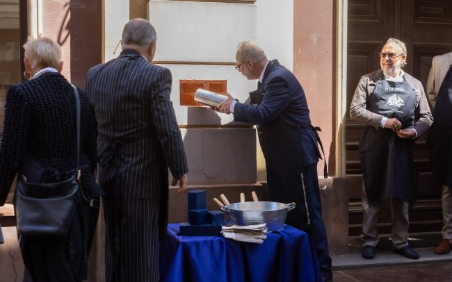 Foto: Vāgnera nama laika kapsulas iemūrēšanas ceremonija