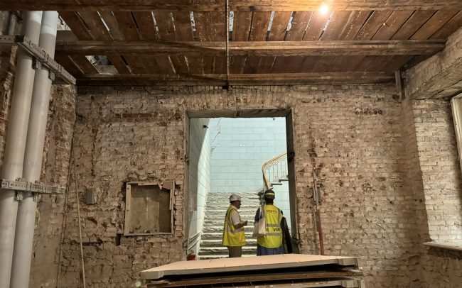 Demontējot apmetumu bijušā teātra zāles sienām, atklājusies bēdīga aina – sienas ir stipri bojātas, vairāk, kā to iepriekš spēja paredzēt. Apstiprinās fakts, ka pirms 250 gadiem teātra zāle ir uzbūvēta bijušās noliktavas vietā – visas ķieģeļu mūra sienas sastāv no aizmūrētām arkām un ailām, kas izraibinātas ar dažāda izmēra plaisām. Laiku slāņi pārklājas un dažbrīd rodas nopietnas bažas par sienu nestspēju. Konstruktoriem nākas nopietni pētīt un pārstrādāt iepriekš izstrādātā būvprojekta risinājumus. Projektā ir iesaistīta Arhitektoniskā izpētes grupa (SIA AIG), kas rūpīgi dokumentē sienu atsegumus un demontāžas laikā atrastās detaļas.