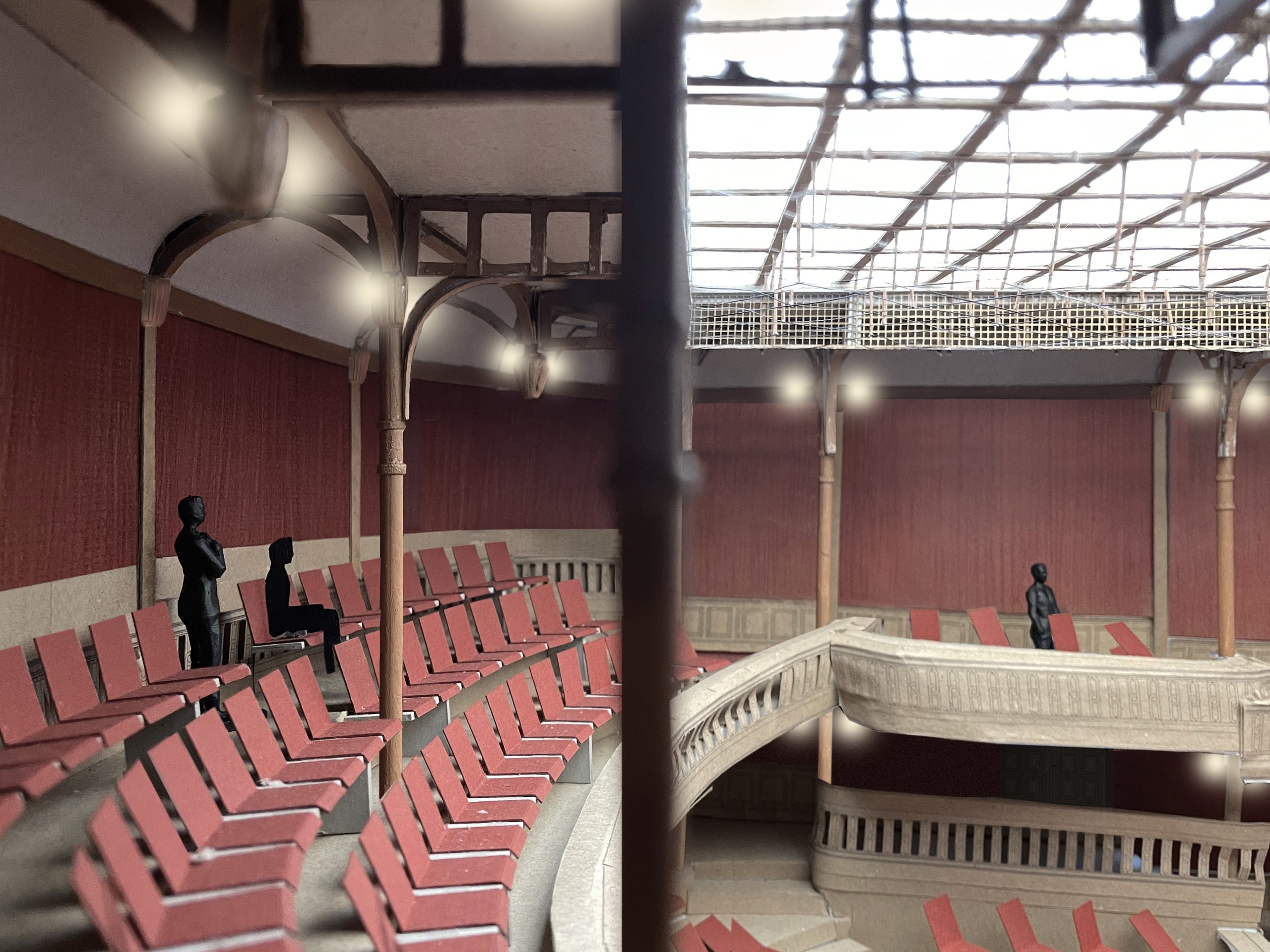Visu laiku tika uzturēta leģenda, ka teātra zāle iebūvēta vecā spīķerī. Noņemot sienu apmetuma kārtas, nonācām līdz ķieģeļu mūriem, kas divās zāles sānu fasādēs uzirdināti ar ritmiski izvietotām logu ailām ar arkām. Neticamā kārtā atradās viens aizmūrēts oriģinālais logs labā stāvoklī, un to eksponēsim atjaunotajā ēkā. Ja tas ir sākotnējais spīķeris, kāpēc tam ir tik daudz logu? Projekta pētnieks arhitekts Ilmārs Dirveiks izvirza hipotēzi, ka nebija nekāda spīķera – sākotnējā zāle būvēta jauna ar izgaismotām sānu galerijām, no kurām nokļūst zāles trīs līmeņos. Līdzīgi kā Latvijas Nacionālajā operā. Tādā gadījumā zāle bija šaura un saspiesta, un grūti ticēt aprakstiem, ka tajā varēja ietilpt 500 skatītāji. Kaut gan daudzi avoti apraksta sliktos apstākļus – publikai trūka gaisa un vēdīja smakas, dziedātājiem uz skatuves bija auksti un bieži saaukstējās. Interesanti, ka skatuves aizmugurē arī ir lielas ailas ar arkām, kas liek domāt, ka dekorācijas tika piegādātas un mākslinieki uznāca no aizmugures, acīmredzot no kādas blakus mājas.